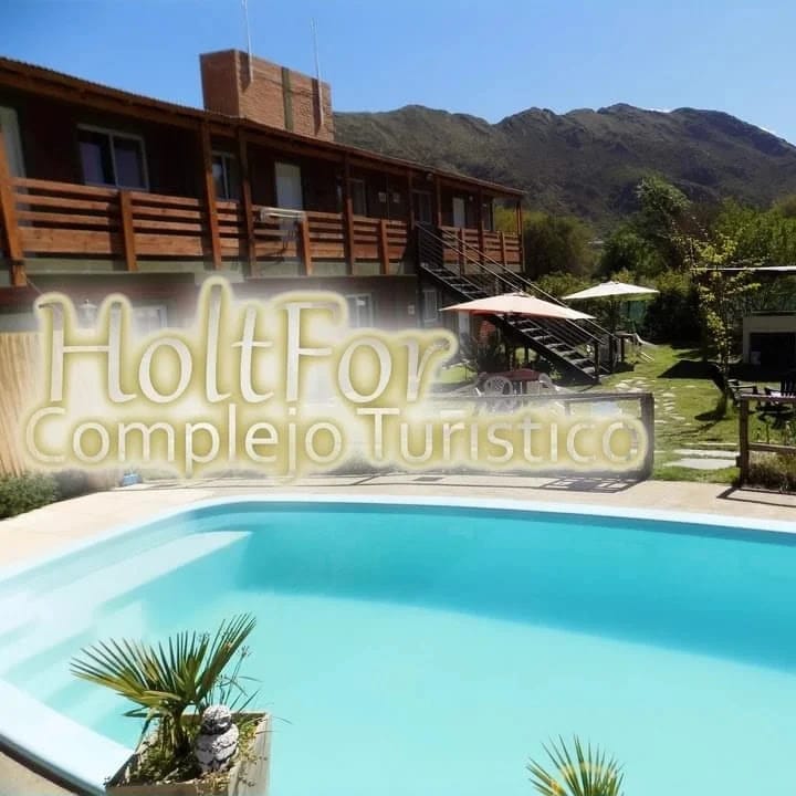 HoltFor es un complejo de departamentos ubicado a metros del Circuito Internacional de Potrero de los Funes, en la provincia Argentina de San Luis. Ofrecemos en alquiler departamentos de 35 mts cuadrados. Cada uno se conforma de un living-comedor con cocina, un dormitorio y un baño. Los mismos son para un máximo de 4 ocupantes, ya que cuentan con una cama matrimonial y 2 camas individuales. Todos los departamentos incluyen un TV led 32» con DirectTV, heladera con freezer, termo-tanque de 80 litros, aire acondicionado frió/calor, estufa eléctrica, anafe hornalla individual o doble, horno microondas y pava eléctrica. El predio cuenta con WiFi libre en toda su extensión. En el mismo se encuentran las cocheras individuales y techadas, parrillas/asadores amplios, y mesas individuales. En el solárium se encuentra la estrella del complejo: una enorme piscina de 10 x 4 mts con servicio de bar interno, rodeada por un cautivador paisaje de montañas.