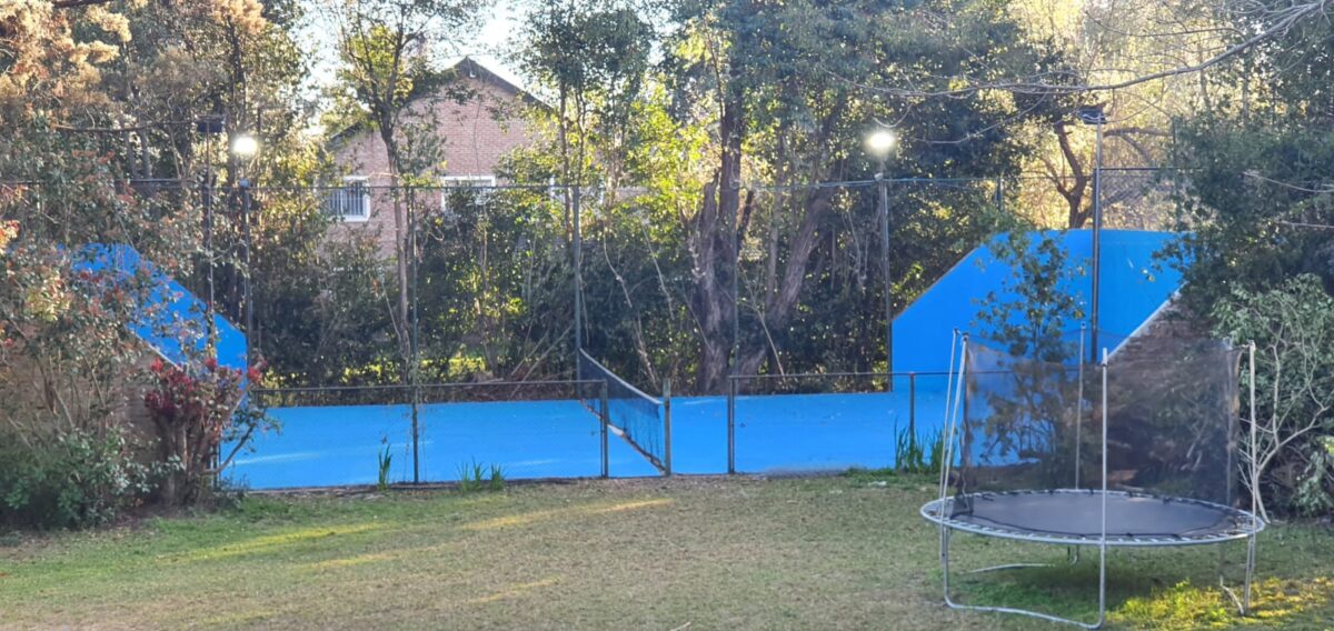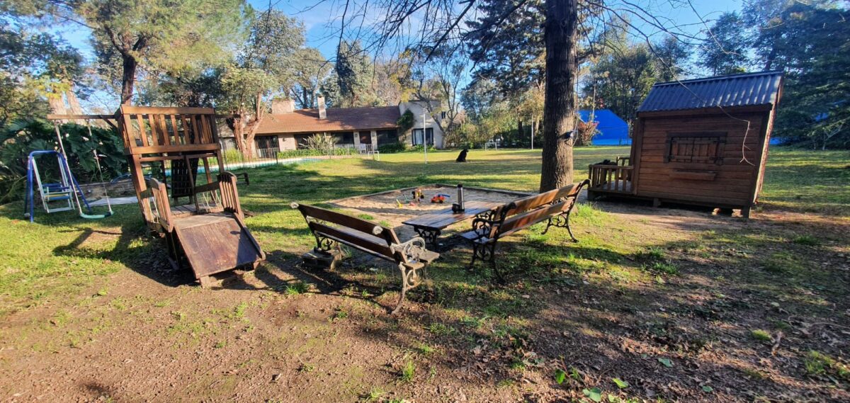 Quinta muy bien equipada con gran parque y quincho calefaccionado, diversas canchas para deportes y pileta cercada con solarium.