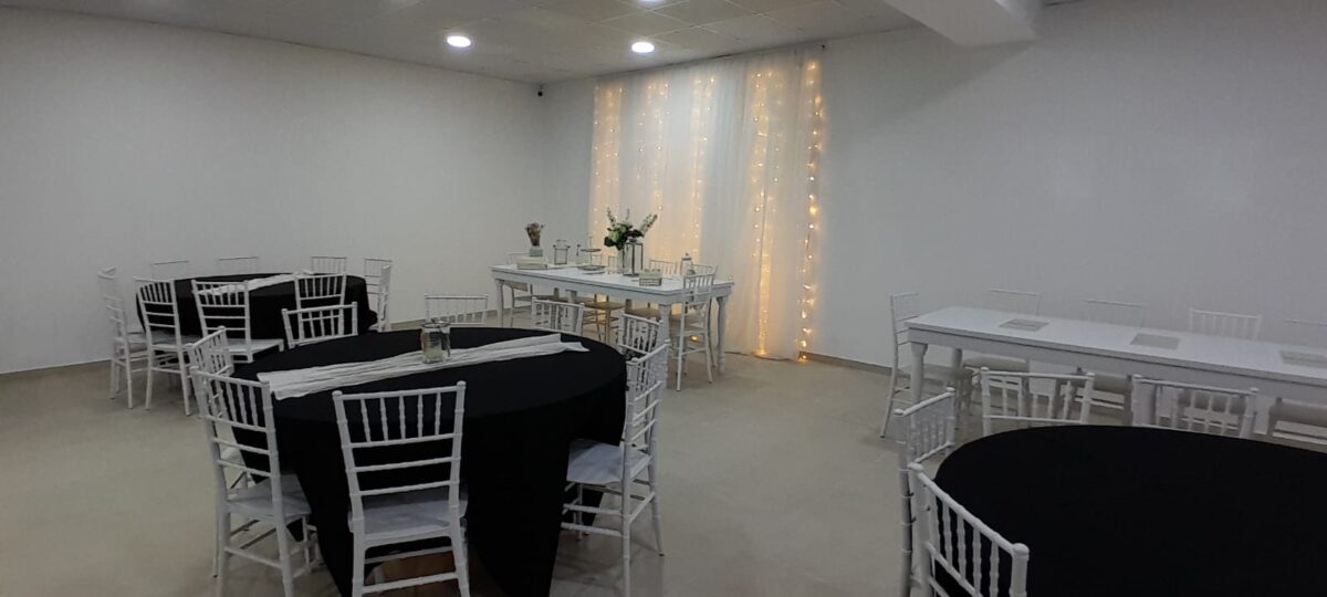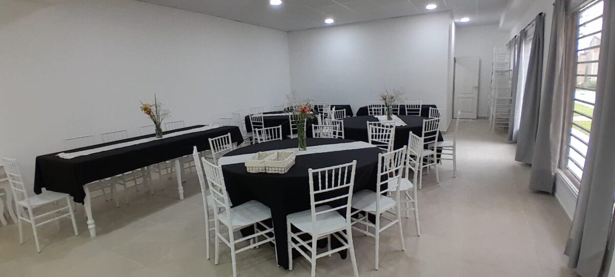 * Salon cerrado con mesas y sillas Tiffany con capacidad para 100 personas.