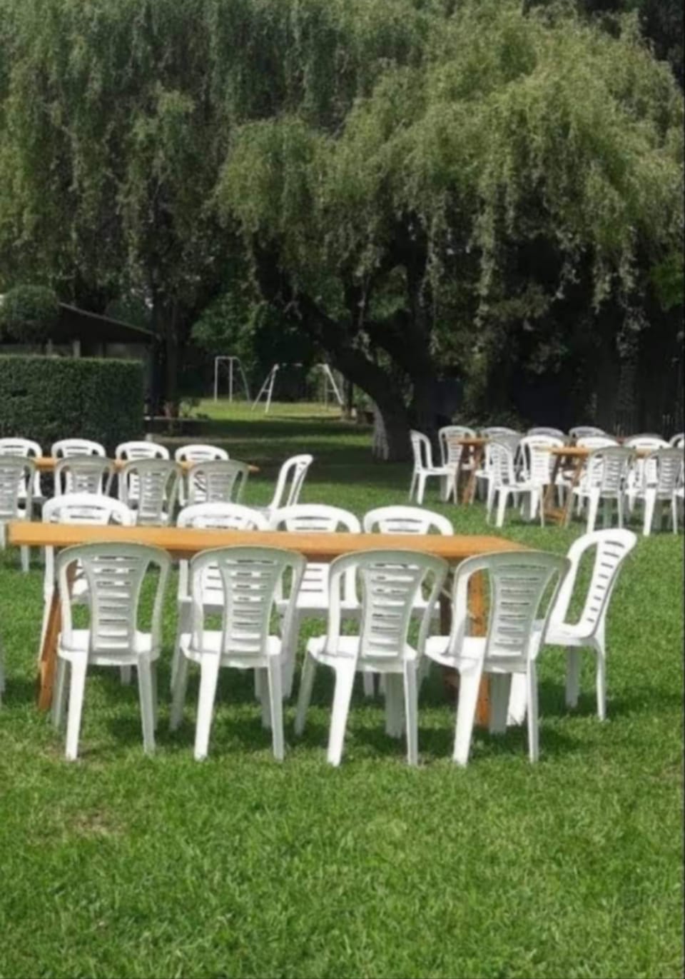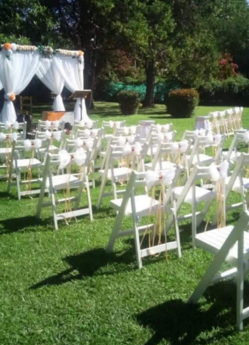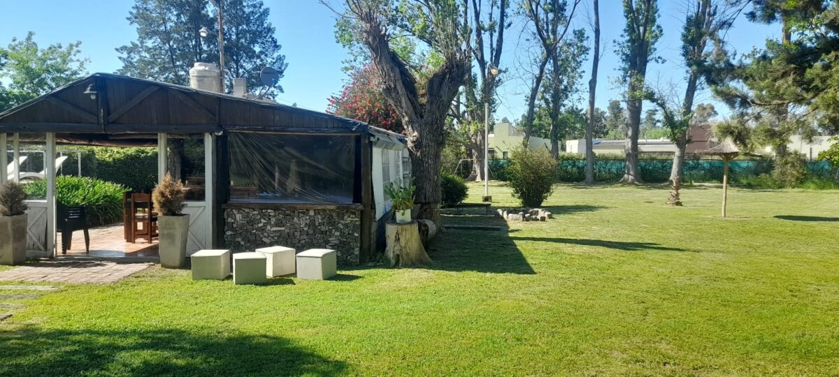Te ofrecemos un lugar cómodo tranquilo y privado para realizar tu evento o juntada con amigos o familia, esta equipado con quincho, parrilla, asador con estaca disco de arado , mesas sillas para la cantidad de personas q necesites , cocina, 2 heladeras, vajilla (hasta 20 personas que vienen incluida con el precio de base) ,mesas, sillas y manteles, 2 baños uno con ducha , pileta de 10x5x2,10; un deck de madera q bordea todo un largo de la pileta con gacebo y reposeras, hermoso parque con arboleda añosa.